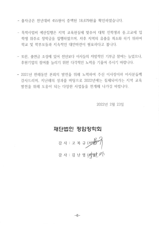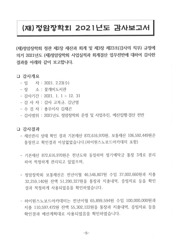 2021년 정암장학회 결산공고