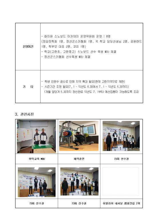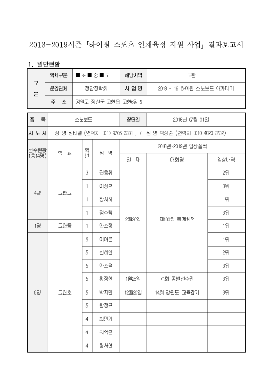 2018-2019시즌「하이원 스포츠 인재육성 지원 사업」결과보고서