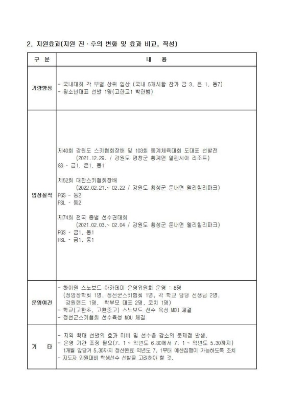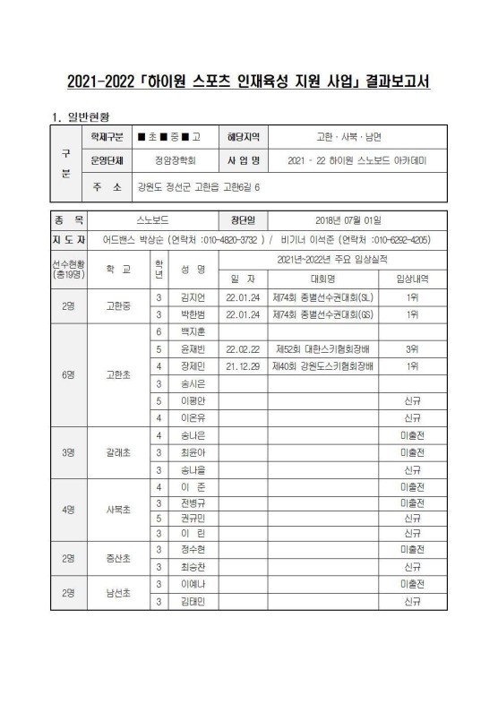 2021-2022시즌「하이원 스포츠 인재육성 지원 사업」결과보고서